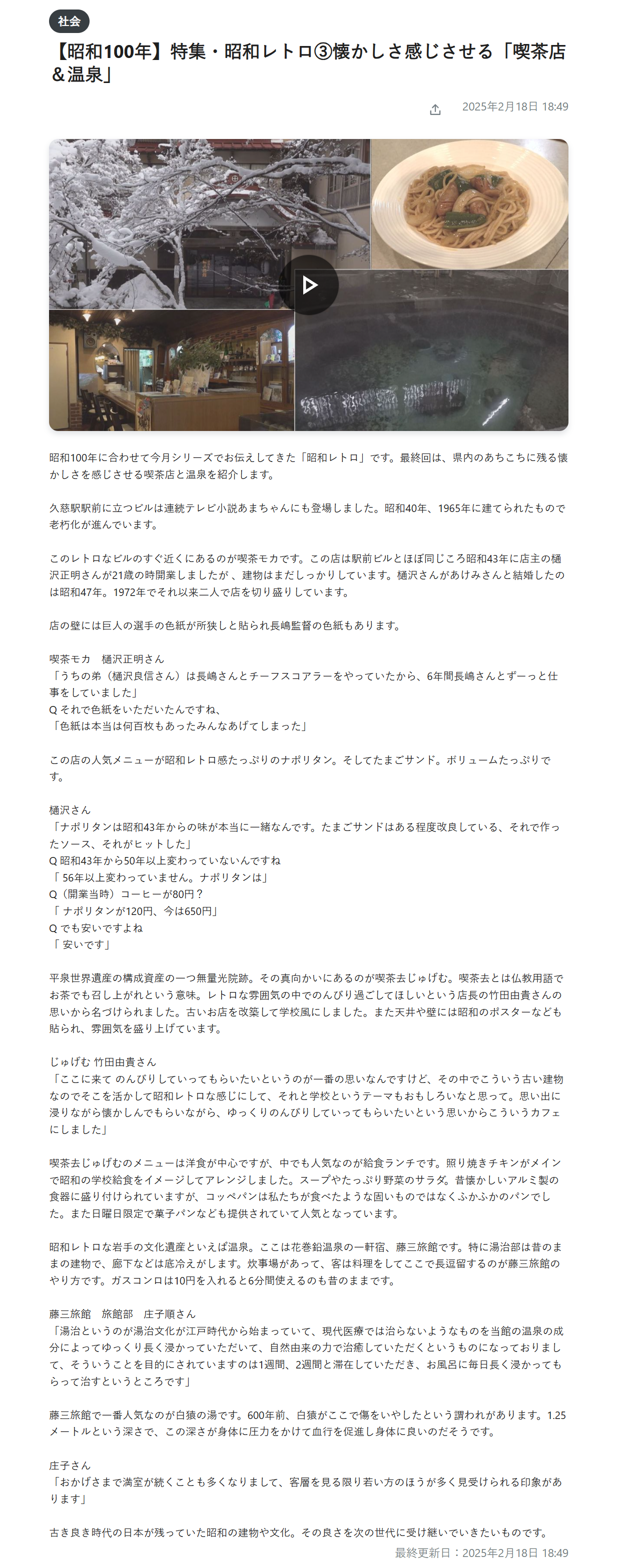 ニュースプラス1いわて『いわて昭和レトロの街』にてご紹介いただきました。